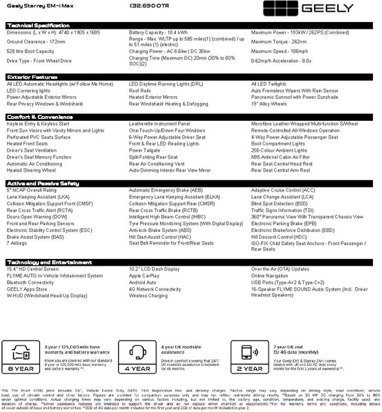 All retail models include four years’ UK Roadside Assistance and a first service at 12 months covered by Geely Auto UK.